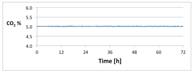 ▲在為期72小時的測量期間,VarisKan LUX儀器中的二氧化碳含量保持穩定。SkanIt軟件在每個測量的運行日志中記錄氣體濃度。
