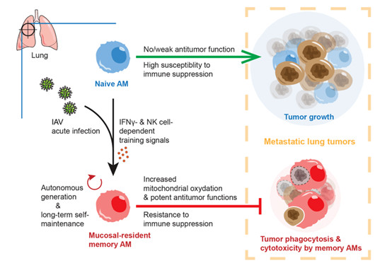 浙大Nat Immunology:經流感病毒訓練的肺泡巨噬細胞的抗腫瘤免疫作用